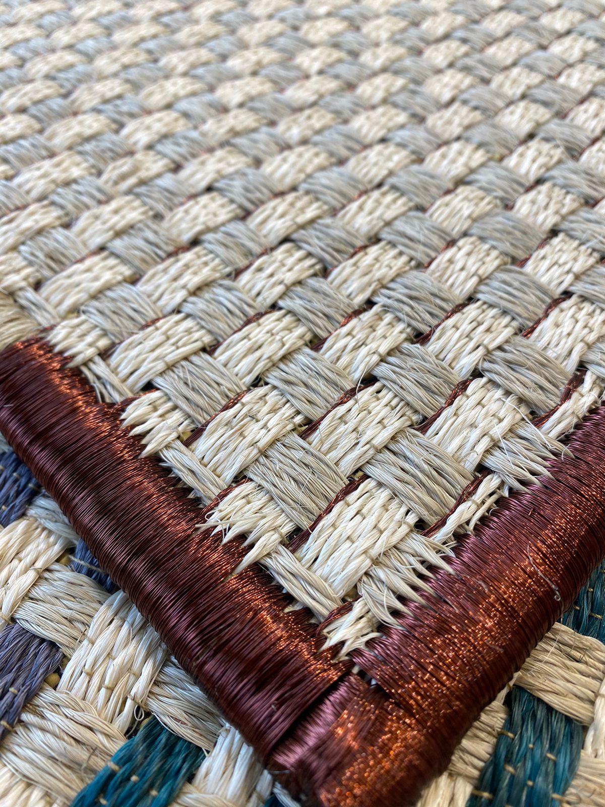 Tapete Tejido Canasto en Dos tonos de Fique y Cobre Uva / F29