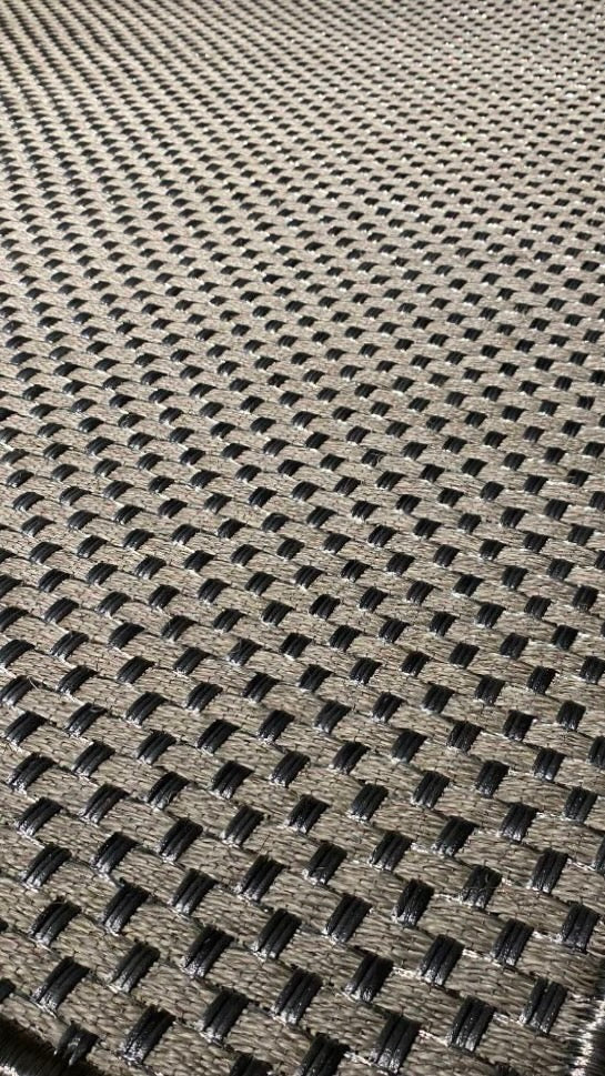 Esta alfombra es tejida en Fique,seda y metal plata, puede elegir el color que desees y el metal a tu gusto.